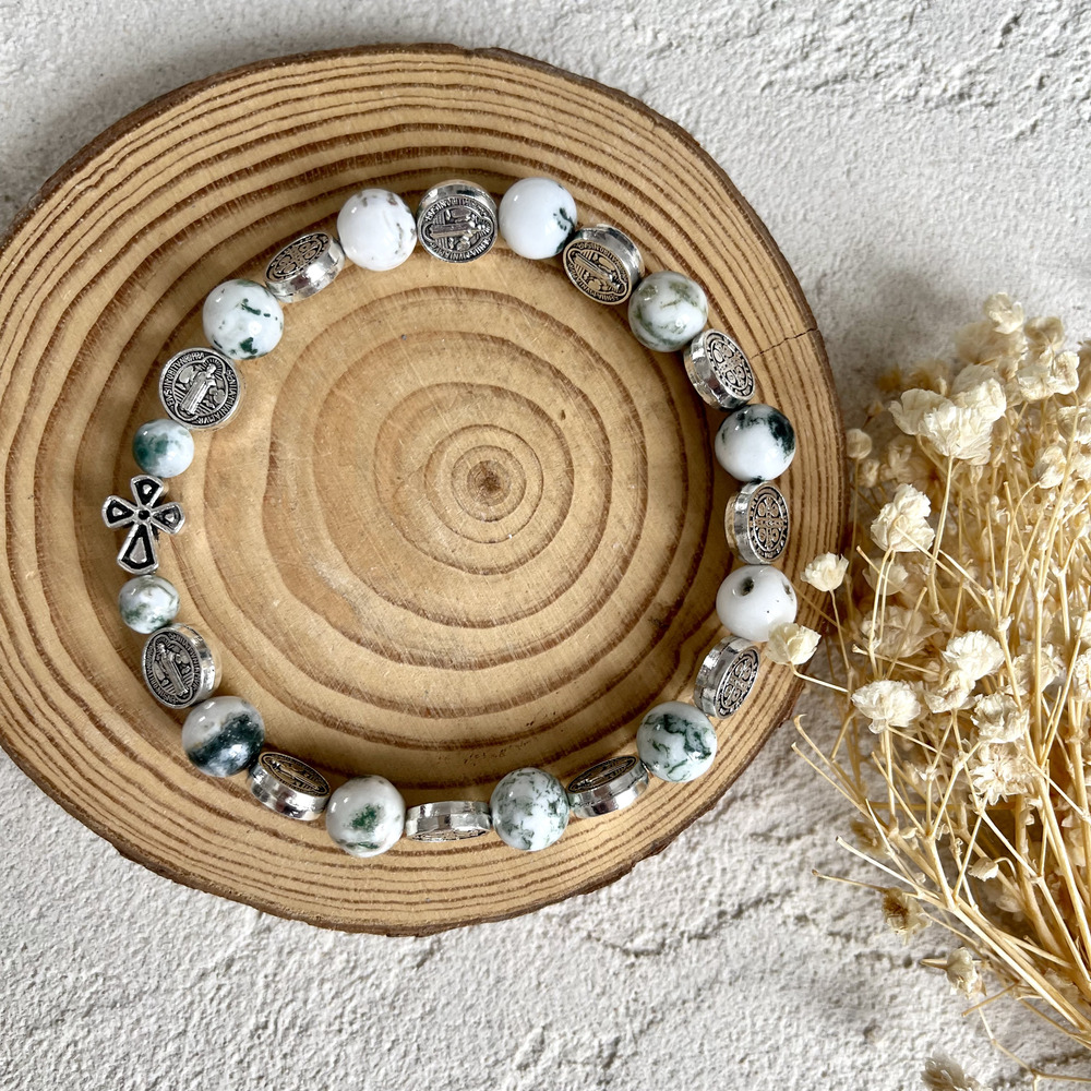 Матеріал: натуральний камінь Моховий Агат, металеві вставки