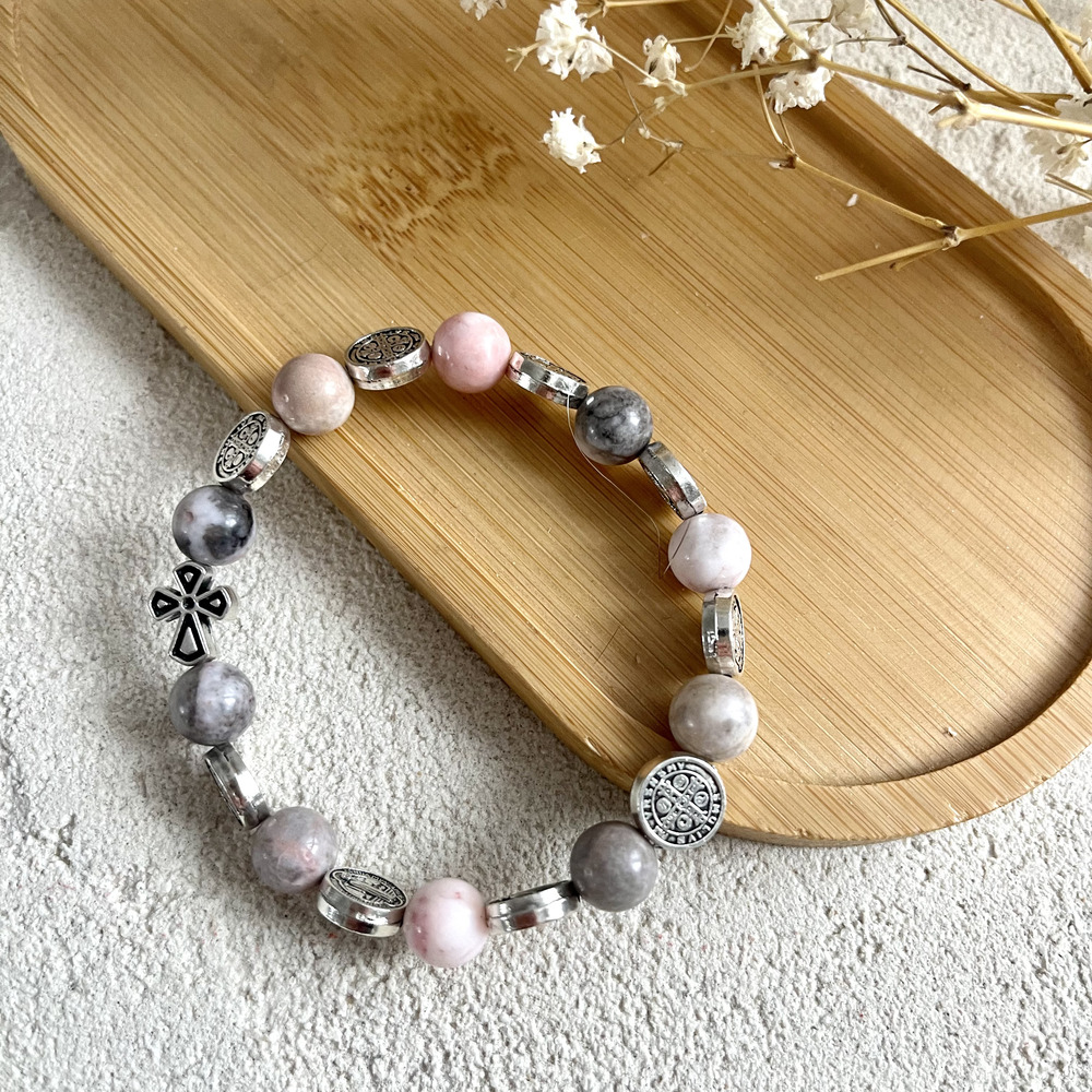 Матеріал: натуральний камінь Родоніт, металеві вставки