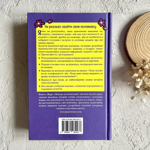 Як багато самотніх людей і навіть неодружених пар мріють про справжнє кохання, про створення міцної щасливої родини. Всесвітньо відомий консультант зі стосунків Джон Грей написав цю книжку, прагнучи допомогти таким людям уникнути найпоширеніших розчарувань, з якими доводиться стикатися впродовж усього періоду вибудовування стосунків, навчити їх правильно трактувати дії та реакції партнера, розуміти і враховувати його життєві позиції, бажання та прагнення. Лише усвідомивши, що чоловіки і жінки мислять та відчувають порізному, можна розраховувати на те, що побачення стануть джерелом радощів, душевного задоволення та самореалізації. Вже незабаром читач відчує переваги подібного зрушення у своєму підході до побачень, виявить, що набагато краще розуміє, як слід діяти за тих чи інших обставин. Варто лише виставити належним чином хоча б кілька фрагментів пазла, як усі інші одразу стануть на свої місця.Озброєні цим новим підходом, ви знайдете мотивацію до дій, здобудете нові поведінкові навички й упевненість в собі, необхідні для пошуку своєї половинки.