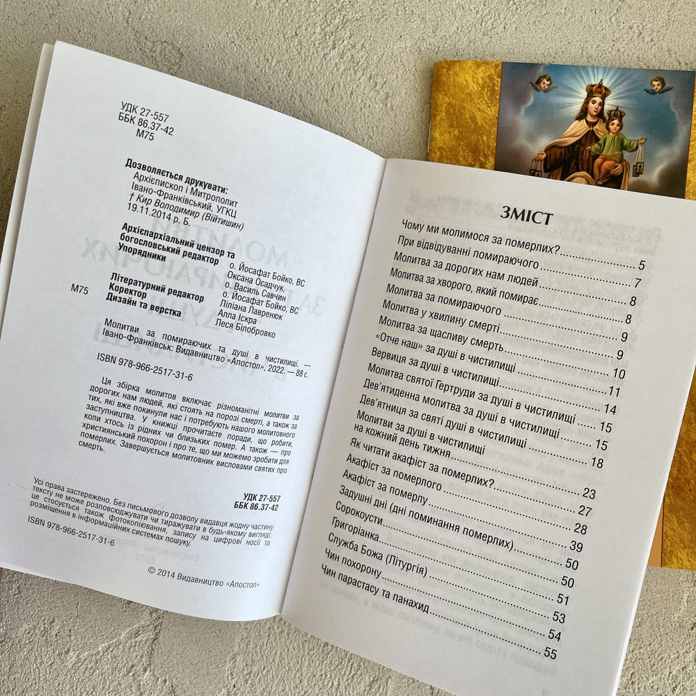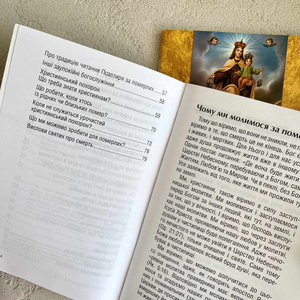 Ця збірка молитов включає різноманітні молитви за дорогих нам людей, які стоять на порозі смерті, а також за тих, які вже покинули нас і потребують нашого молитовного заступництва. Тут також знайдете вислови святих про смерть, а також розповідь про музей бідних душ з чистилища, що знаходиться в Римі.