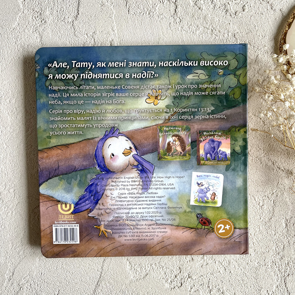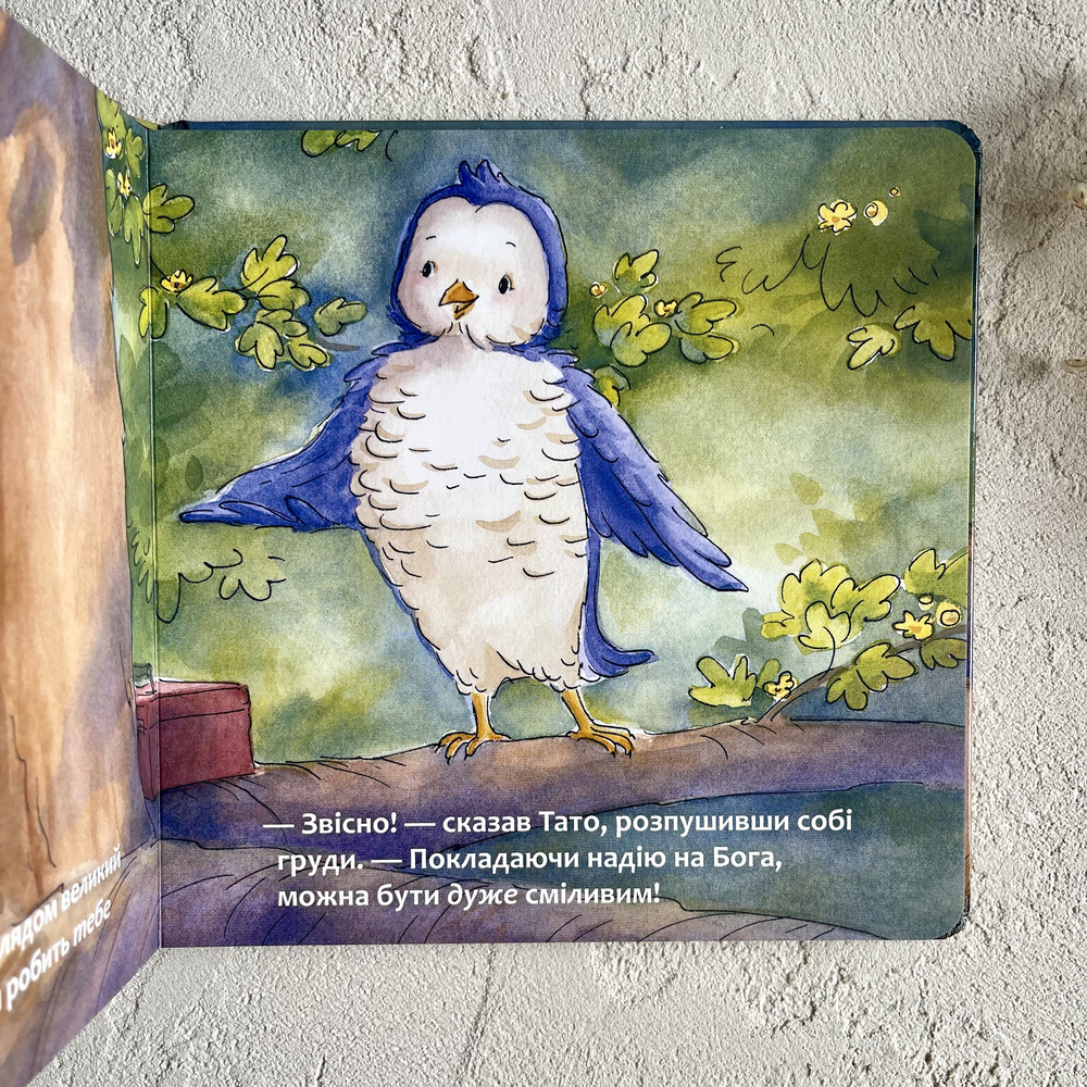 Навчаючись літати, маленьке Совеня дістає також і урок про значення надії. Ця мила історія зігріє ваше серце й навчить, що надія може сягати неба, якщо це — надія на Бога.